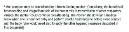 其次,就算你有密切接触史、高度怀疑就是新冠病毒感染,对一般哺乳妈妈而言,目前的建议是:可以(could continue breastfeeding)。