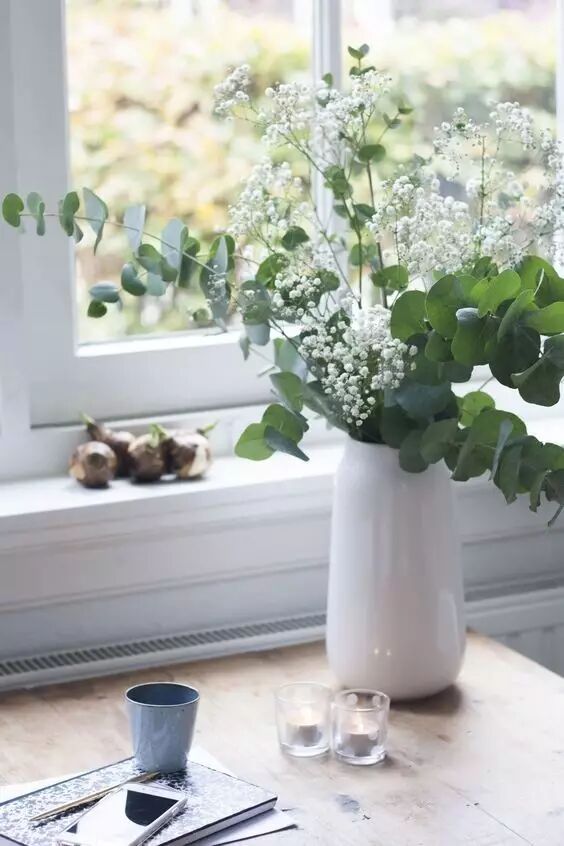 尤加利是极好的的制作鲜切花和干花的植物,我们在无数家居美图里见过它是气质清高孤傲的装饰花束,比鲜花高冷,比绿植别致。
