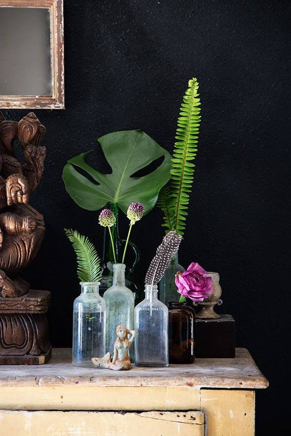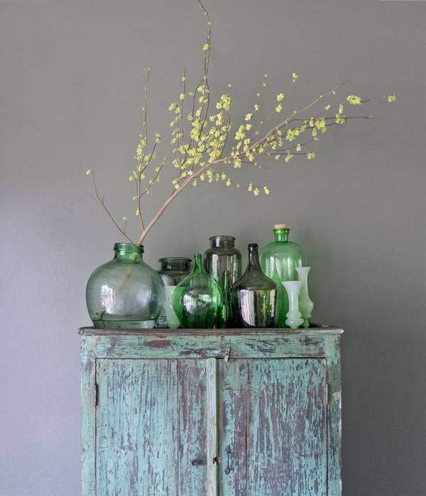 玻璃瓶和枯枝搭档,点上几支蜡烛,