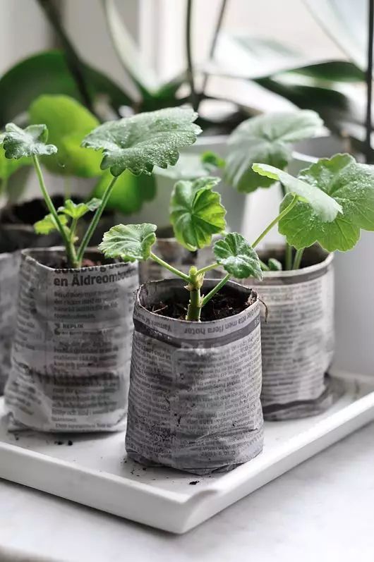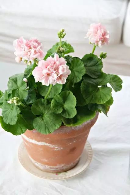 将泡好的天竺葵移摘到花盆中