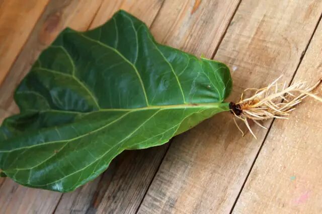 扯下两三片琴叶榕成熟的叶子