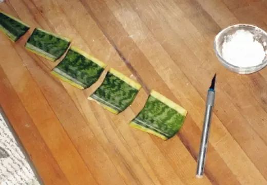 在虎尾兰叶子的切口处沾上面粉
