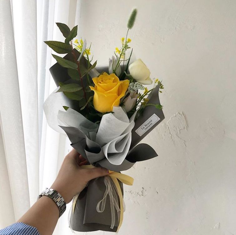 鲜花不是突然出现在花瓶里的,大家得起早贪黑地去花市进货,最早凌晨4点就得出发。还要在市场里来回穿梭,购买自己要买的花材,随便做一个花束的花,就可能相当一包大米的重量。