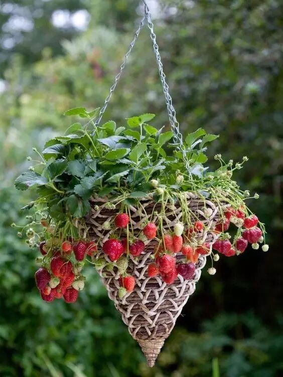 不久你就可以看到红通通的草莓长满了整个吊篮。