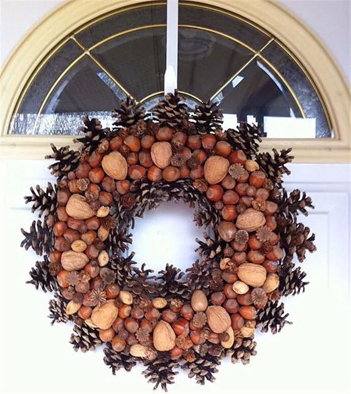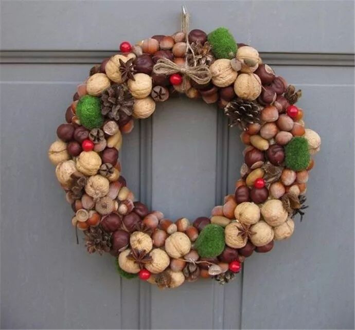 冬天是各种干果上市的季节,栗子、核桃、榛子......用它们来做一个花环,观赏之后还能吃掉,可以说是充分发挥了它们的使用价值了。