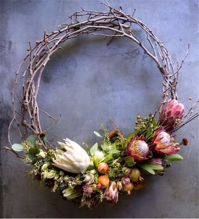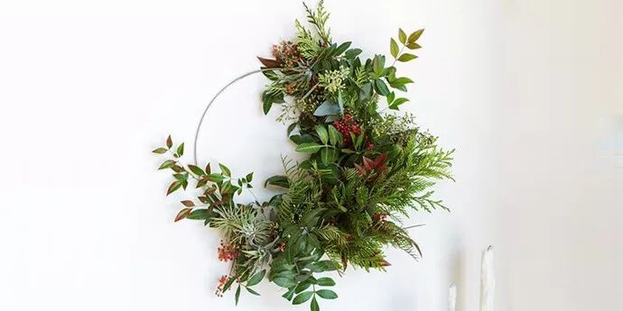 传统的圣诞花环一般会用常绿针叶,搭配红色的冬青果,一品红,或小铃铛,烘托节日的氛围,创造出一个精致的看点。现在的圣诞花环早已不拘泥于这种形式,具体都有哪些制作形式呢,赶紧来看看吧。