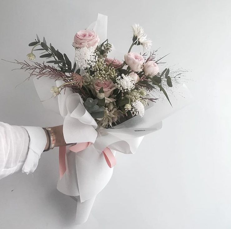 以前流行的包装纸多是卷边纸瓦楞纸,样式较老旧,而现在流行花束包装纸以雾面纸韩素纸等为主,半透明的纸张让花材也若隐若现,十分好看。花材和包装纸的搭配相得益彰,既不突兀也不过分弱化,其次是包装纸的折叠方法,非常的自然,使整个花束看起来非常和谐。