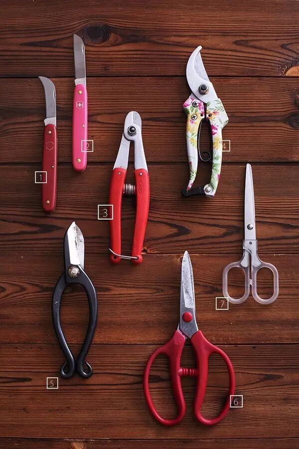 常用剪刀,可以选择十字交叉处带铁丝槽的剪刀,多了剪铁丝功能。因其多为当代设计,所以在设计功能性及力学原理都有特别人性化的细节。喜欢机械感的可以选择德国产,对于追求高效和手型比较小巧的可以选择日本产。