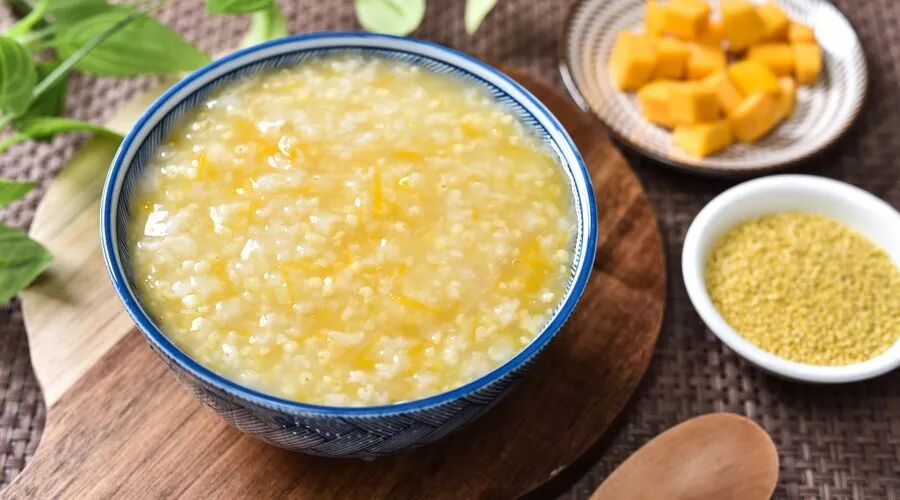原料:燕麦、大米各1小把,南瓜1块,盐适量。