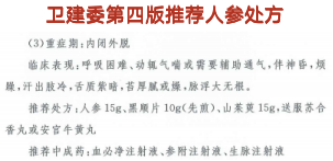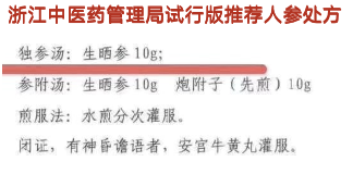 浙江中医药管理局试行版肺炎中医药治疗方案推荐肺炎休克患者应用独参汤或参附汤。