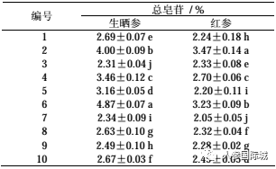取自10份来自东三省不同地区的人参样本,得出的皂苷含量存在一定量的差异,这说明不同的海拔高度、水土质量成分都决定着人参皂苷含量。