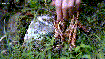 小伙田边挖到野山参,吃起来居然有点甜?