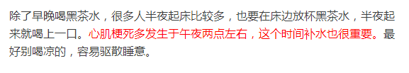 清晨起床后也要喝杯温黑茶水,小口慢慢喝,可以稀释血液,减轻血管负担。