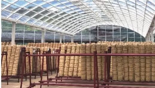 ▲ 踩制成型的千两茶,要晒足四十九天。