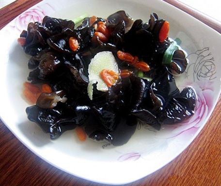 2、木耳用清水泡发后,去蒂洗净,撕成碎片,备用。