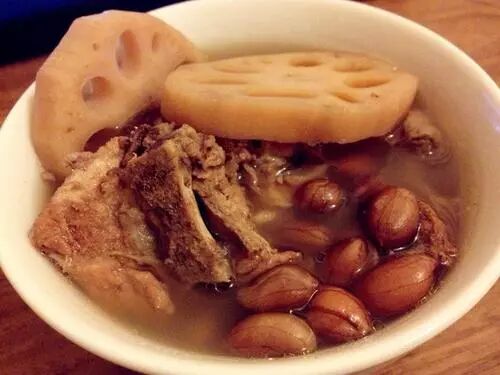 营养价值:花生、红枣、莲藕都是补血养血的佳品,莲藕能清除腹内积存的瘀血、增进食欲、帮助消化、促进乳汁分湿,藕性偏凉,产后不能过早食用,产后半个月食用比较合适,可以补血祛瘀。