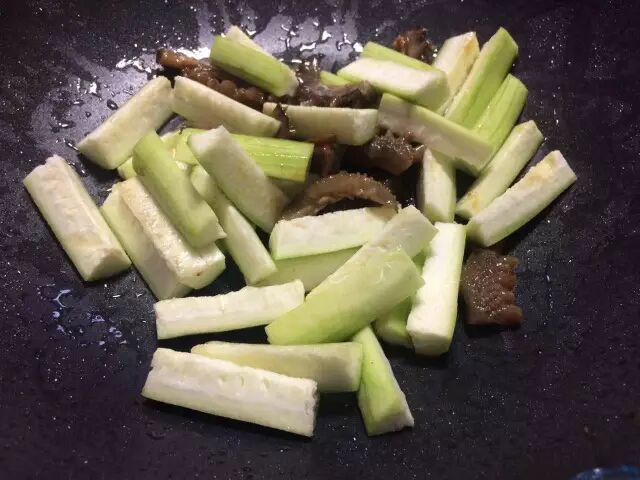 4、 将丝瓜倒入锅里快速翻炒至熟,加适量盐翻炒均匀即可出锅。