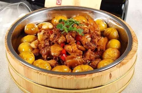 【材料】板栗300克,土鸡半只,姜切丝,料酒,沙姜粉,蚝油,盐适量。