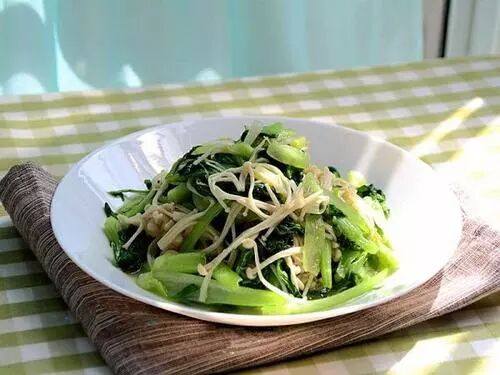 【材料】芹菜一段,胡萝卜一段,白萝卜一片,土豆一块,冬瓜一块,豆芽一把,菜花一朵,油一勺,盐适量,香油一勺。
