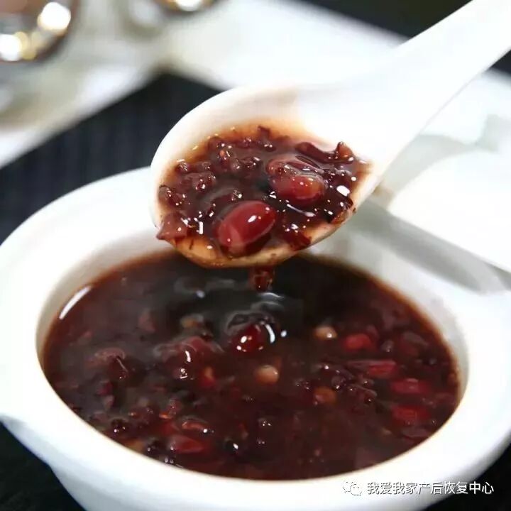 功效:红豆及紫糯米含丰富的蛋白质和铁质,可以改善产后贫血。