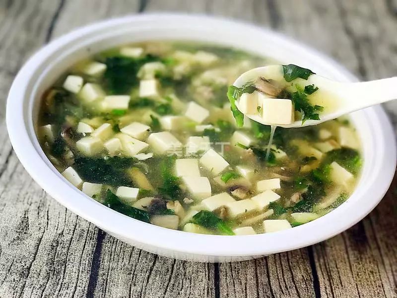 香菇2个,春笋1根,荠菜1把,嫩豆腐1块,生抽、香油少许,水淀粉,盐适量