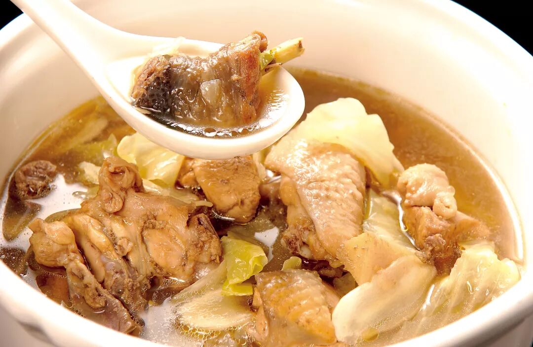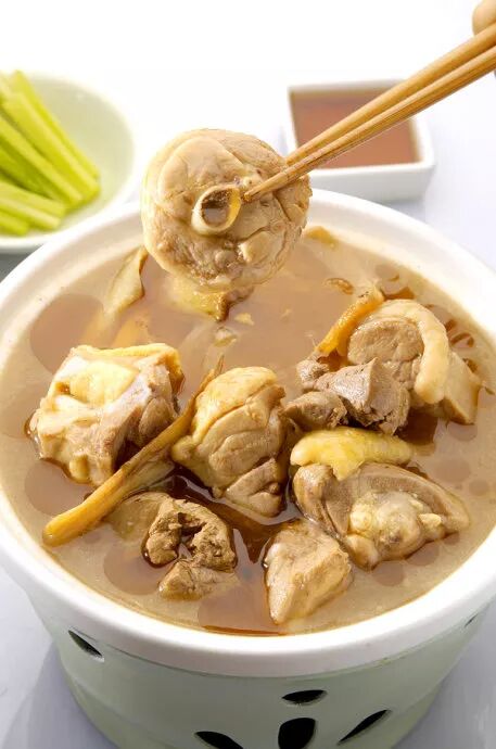 将鸡腿块放入米汤中,再加入药材及米酒以小火炖煮1小时即可。