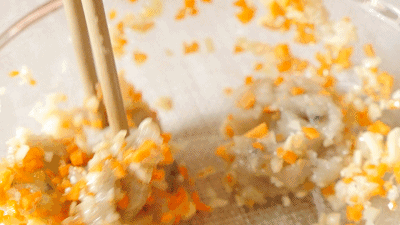 把虾、胡萝卜和白玉菇混合,虾和菌菇类绝对是好CP,口感和味道更鲜甜哦。包在蛋皮里,每一颗都含有丰富的营养。