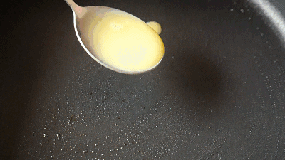 不粘锅小火烧热,取适量的蛋液,在不粘锅中摊成蛋饼。
