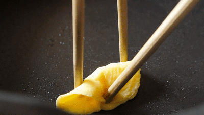 将蛋皮折叠,用筷子将两端夹在一起,再煎个2分钟,就差不多了~