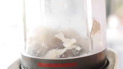 准备好配菜,虾就腌制的差不多了。把虾段放入搅拌机的绞肉杯中,搅打成细腻的虾泥。