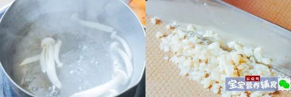 tips:因为菌菇类的不大好咀嚼,所以尽量切的碎碎,越碎越好!