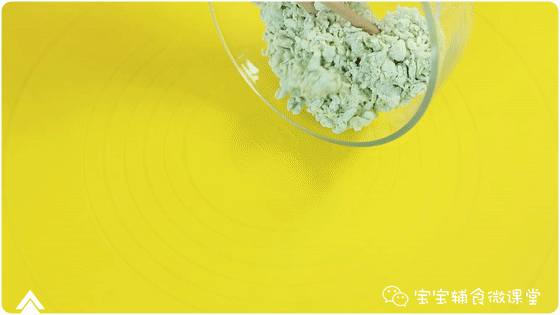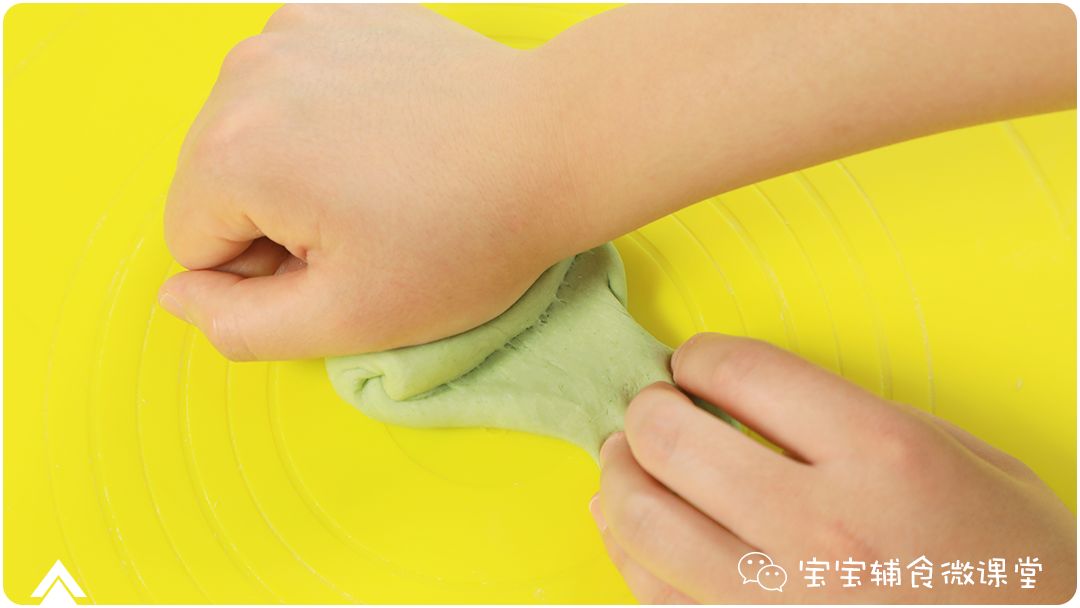 »妈妈们可以在揉面垫上撒点面粉,可以防止面团粘着面垫。