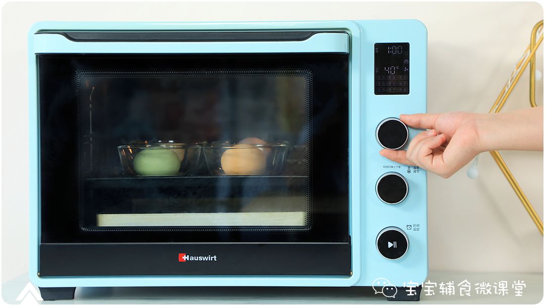 将揉好的面团放入烤箱,烤箱底部放40度左右的温水。