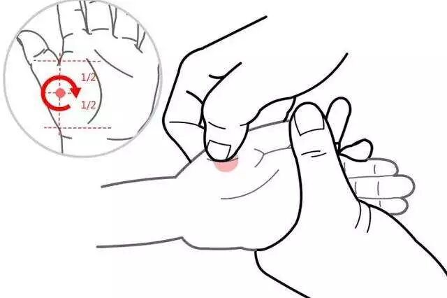 位置:用拇指揉大鱼际平面中点,称揉板门。