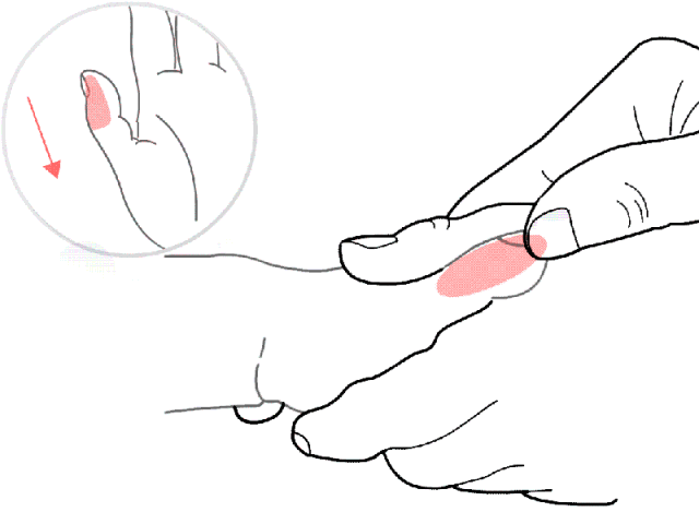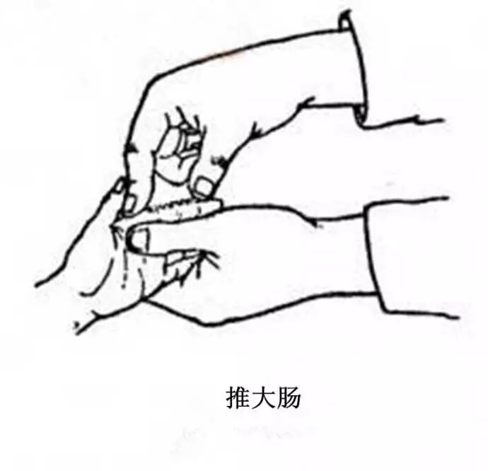 手法:在患儿侧方,一手扶住患儿的前臂,另一手以拇指罗纹面在患儿示指桡侧缘,自指尖到虎口成一直线进行直推,反复推200次。