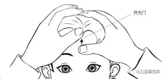 手法:眉心至前发际成一条直线。双手拇指从孩子两眉头中间交替向上推直推到额头上的发际处,有发汗解表、开窍醒神等作用。