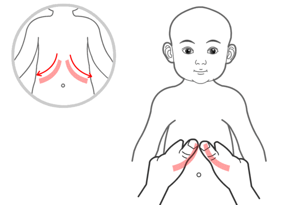 手法:用双手拇指自剑突下分别沿肋弓下缘或中脘到脐,向两旁分推。约50~100次。