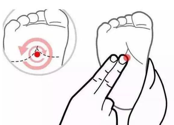 位置:涌泉穴在脚心,屈趾时,足掌心前正中凹陷中。