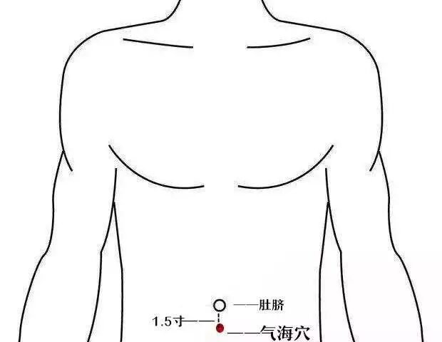 手法:位于身体前正中线上,肚脐正中下1.5寸。从肚脐往下两横指(食、中两指头)处就是气海,用拇指或中指或掌根顺时针按揉该穴,200次,有缓解孩子遗尿、腹泻的作用。