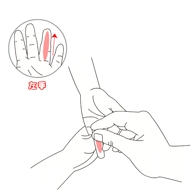 在无名指螺纹面,从指根向指尖直推。宣肺清热、止咳化痰。常用于肺热咳喘、干嘛莫发热、便秘等。