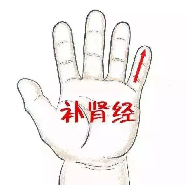 手法:在小拇指手掌面,自指根到指尖成一直线。从指根直推到指尖300~500次。