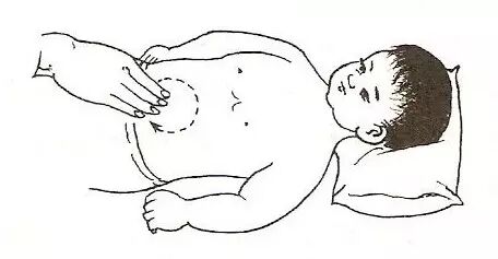 用掌面摩小儿腹部3~5分钟。摩腹具有健脾和胃,理气消食的作用。