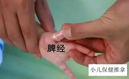 循拇指末节罗纹面,由指尖向指根方向直推。或是旋推拇指末节罗纹面即为补脾经。补脾经有健脾胃,补气血的作用。一般可操作300~500次。