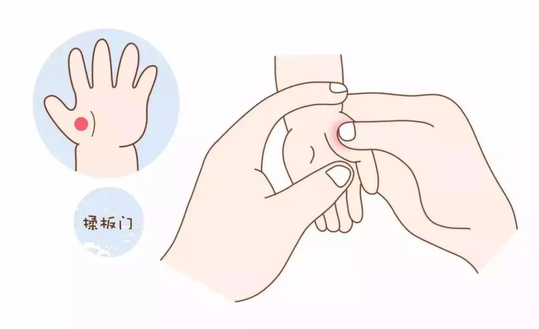 手法:板门穴在手掌大鱼际平面,用右手拇指指腹旋揉小儿手掌大鱼际,揉100-200次。