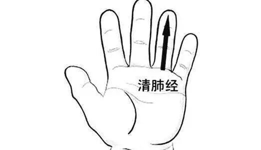 操作:用大拇指在宝宝的无名指指尖处开始,往手掌方向顺直线推拿100次。