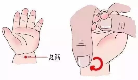 手法:用一只手握住宝宝的手,用另一只手的中指或者拇指指端着力按揉;