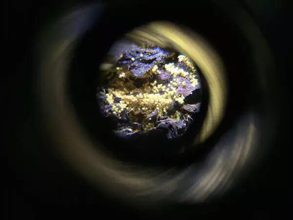 在休眠期,黄曲霉菌只有黄粉状孢子存在,但在生长期,有明显的菌丝形成。 “金花”在生长发育期菌丝不明显,显微镜下,菌丝短、顶端大、且发白,见氧气后很快就消失。成熟后以金黄色囊壳存在。