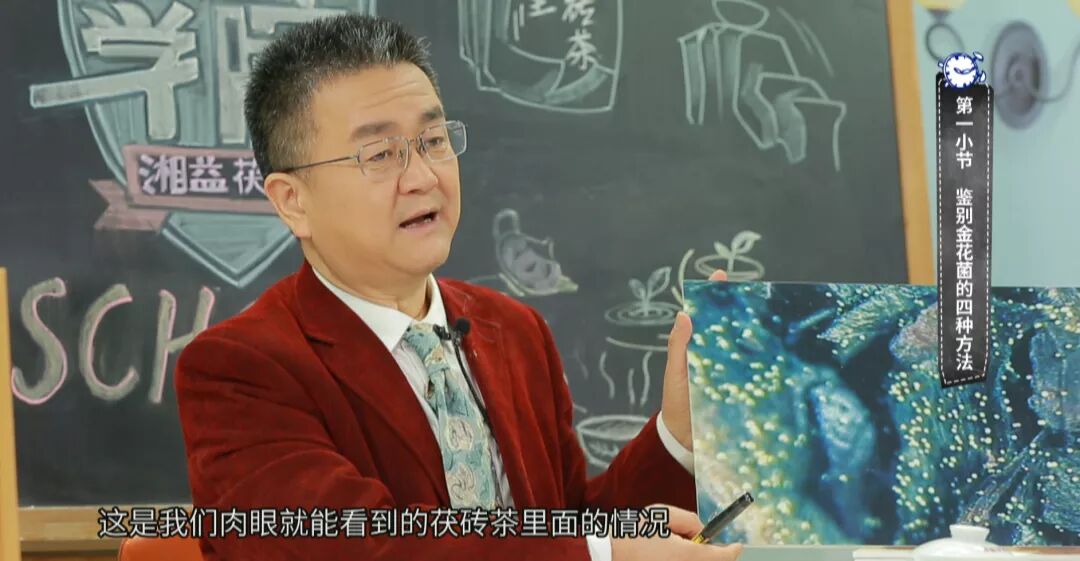《茯茶学院》节目中,通过不同老师的专业讲解,我们了解到了金花的起源、生长规律、鉴别、保健效用以及选购茯砖茶等相关知识。