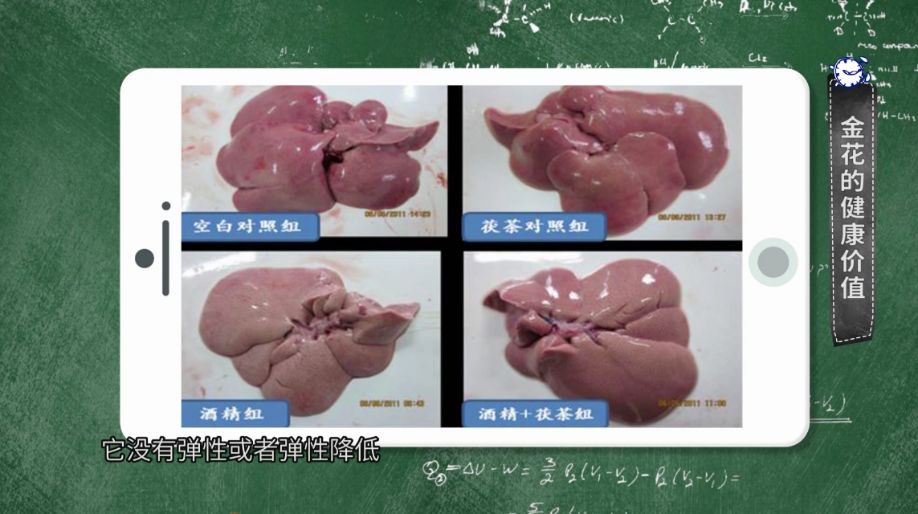 通过解剖小鼠肝组织发现,只饮酒的小鼠肝脏颜色暗沉、没有光泽,并且肝脏表面有脂肪的堆积。而在喝酒的同时饮用了茯砖茶的小鼠的肝脏与之相反,所以充分的证明了茯砖茶能有效的修复酒精引起的肝脏代谢紊乱,减轻过量饮酒引起的肝脏病变,修复酒精性肝损伤,预防酒精性脂肪肝。