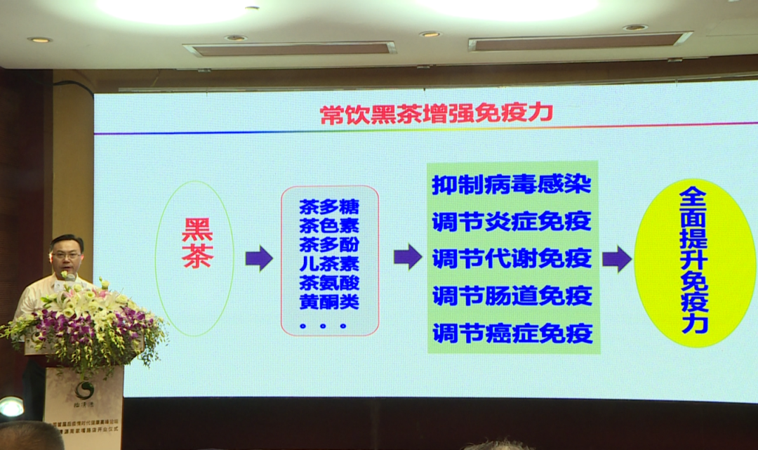 ▲刘院士讲解”常饮黑茶增强免疫力“